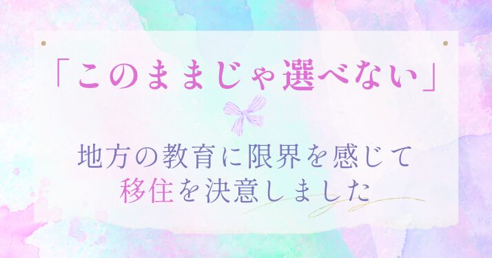 それは、子どもたちの教育、夫の働き方、家族の安心、そして私自身の暮らし方をどう整えていくかという、複合的な問いへの答えです。